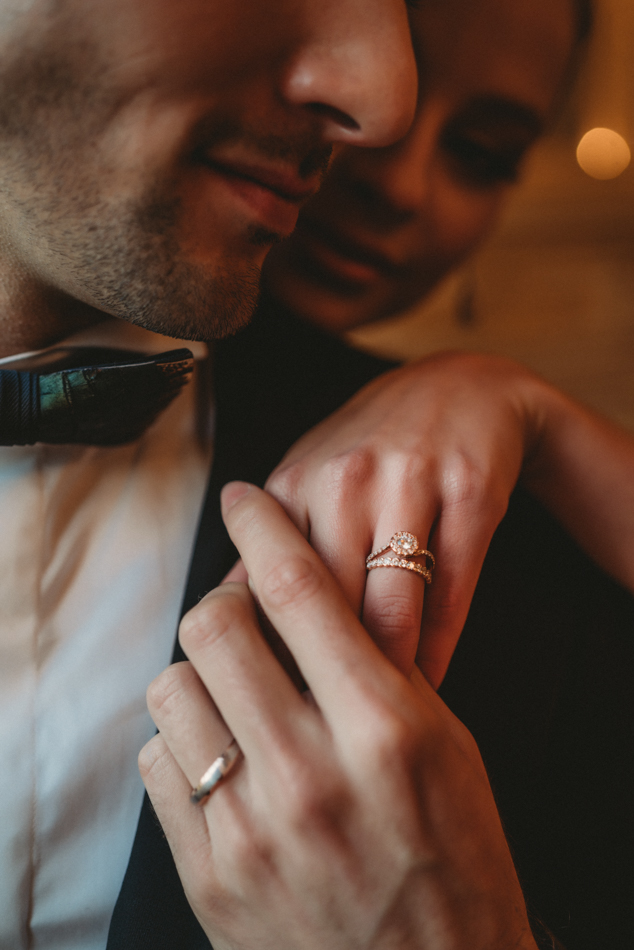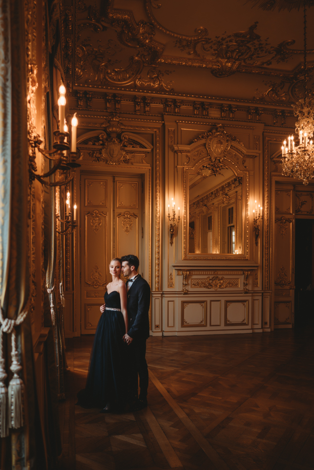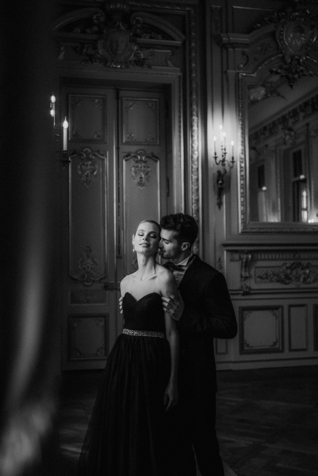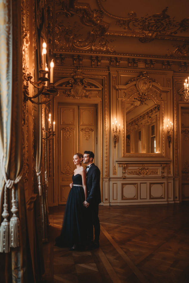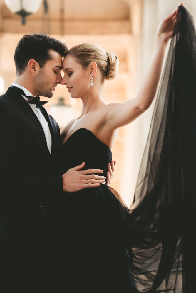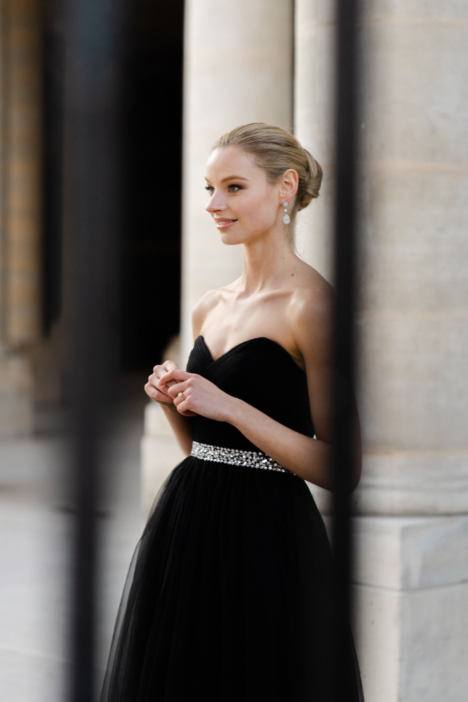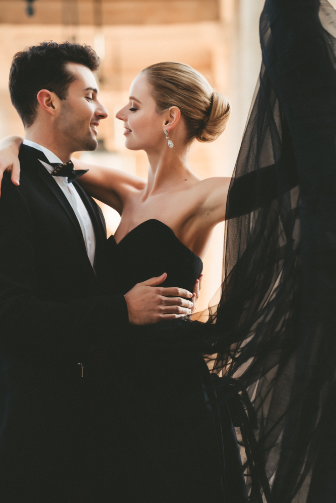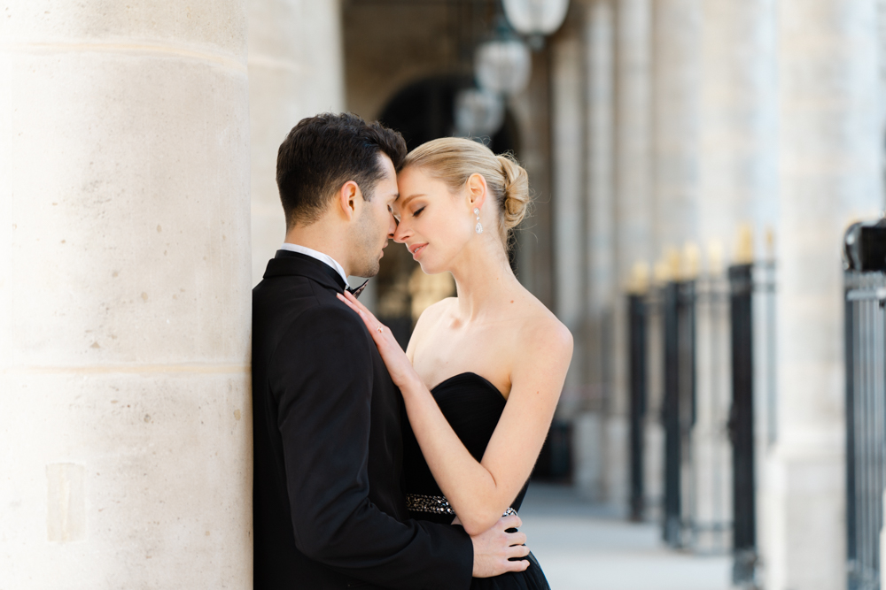 The bride, defying convention with grace, dons a breathtaking black dress paired with Bella Belle shoes, setting the stage for a celebration that breaks free from the ordinary. The love story begins to unfold on the cobblestone streets of Paris, with a captivating photo walk through iconic spots like the Louvre passages and Palais Royal gardens, each frame weaving a tale of passion and elegance.