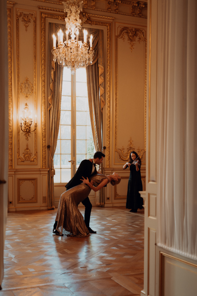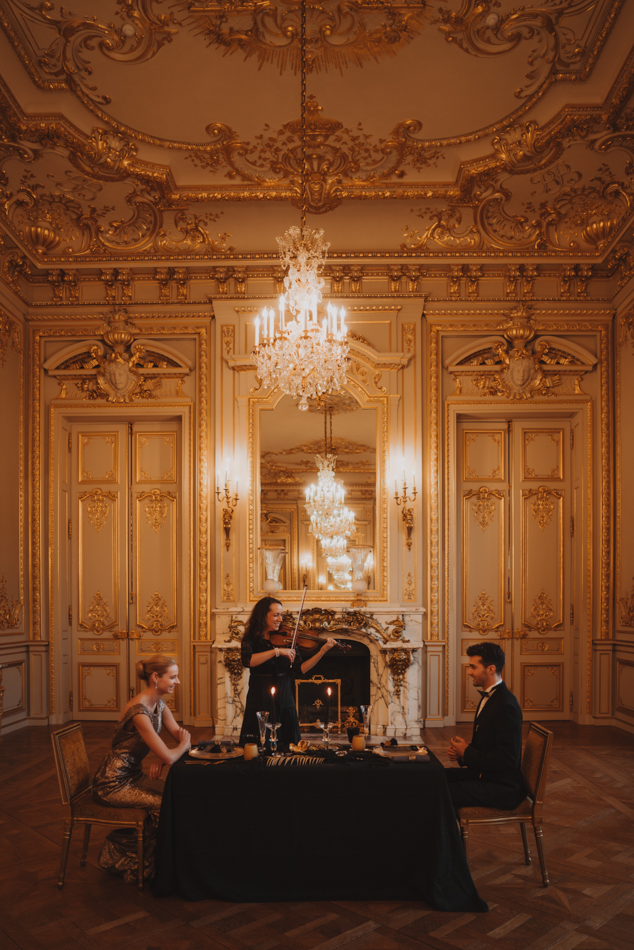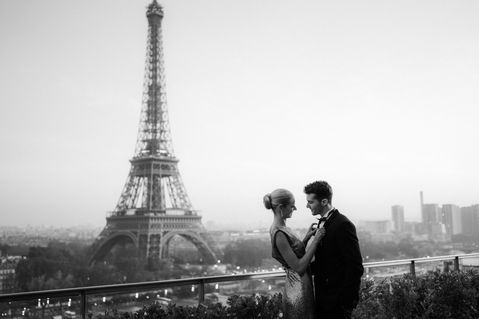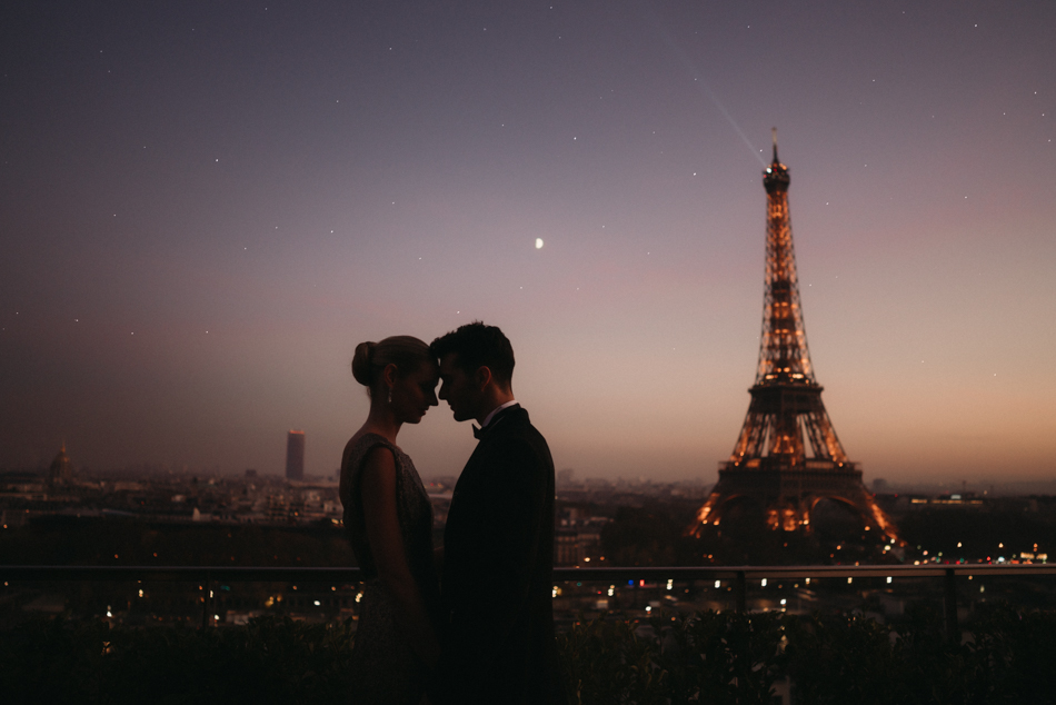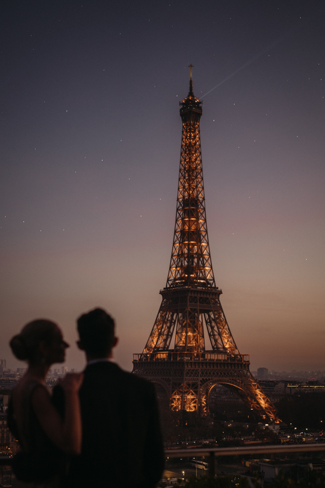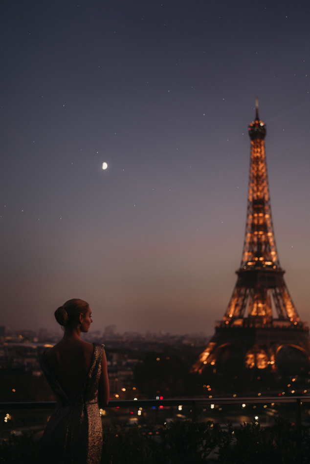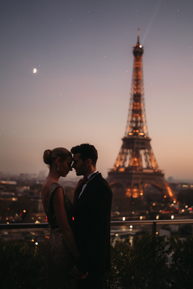 The celebration crescendos as the couple retires to their private suite, where the Eiffel Tower stands as a silent witness to their love story. The bride, now adorned in a stunning noisette and kimono from Marielle Maury, basks in the afterglow of a day filled with love, glamour, and unforgettable moments.