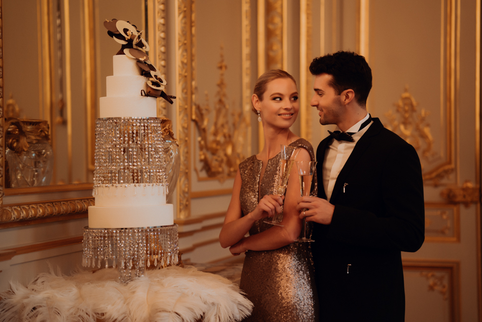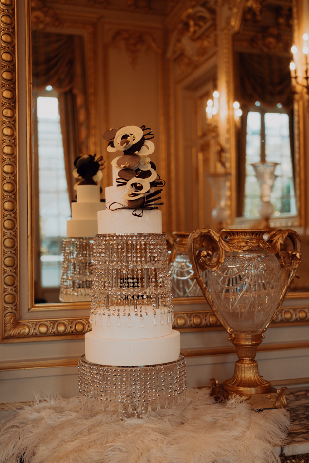 As champagne toasts fill the air and the first dance commences to the melodious tune of Caroline Pearsall’s violin. The couple is immersed in the magic of the moment. The rings, a testament to their enduring love, gleam with beauty and sophistication, crafted by Bijouterie Mohedano. A masterpiece cake, adorned with crystals, became the culinary centrepiece—a reflection of the intricate details woven into this love story. Each layer showcased the artistry and sophistication synonymous with this glamorous affair.